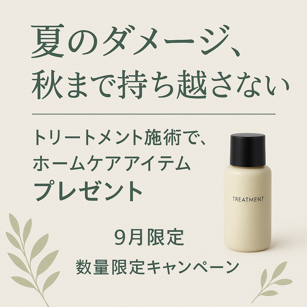 9月中に対象トリートメント施術でホームケアアイテムをプレゼント致します