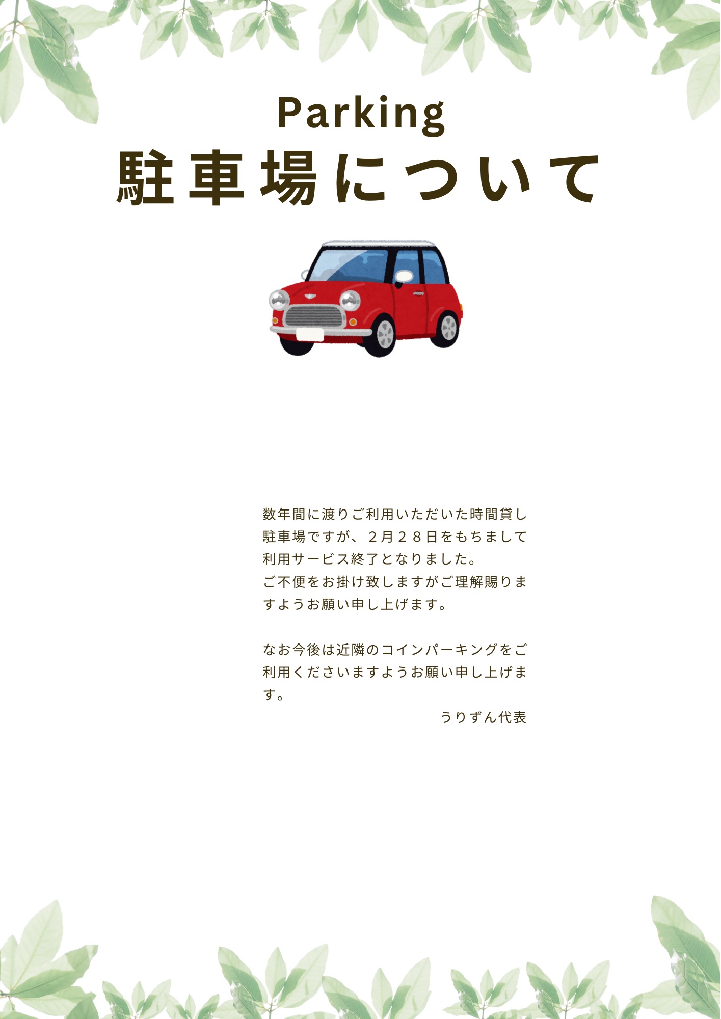 【重要】時間貸し駐車場CLOSEのお知らせ